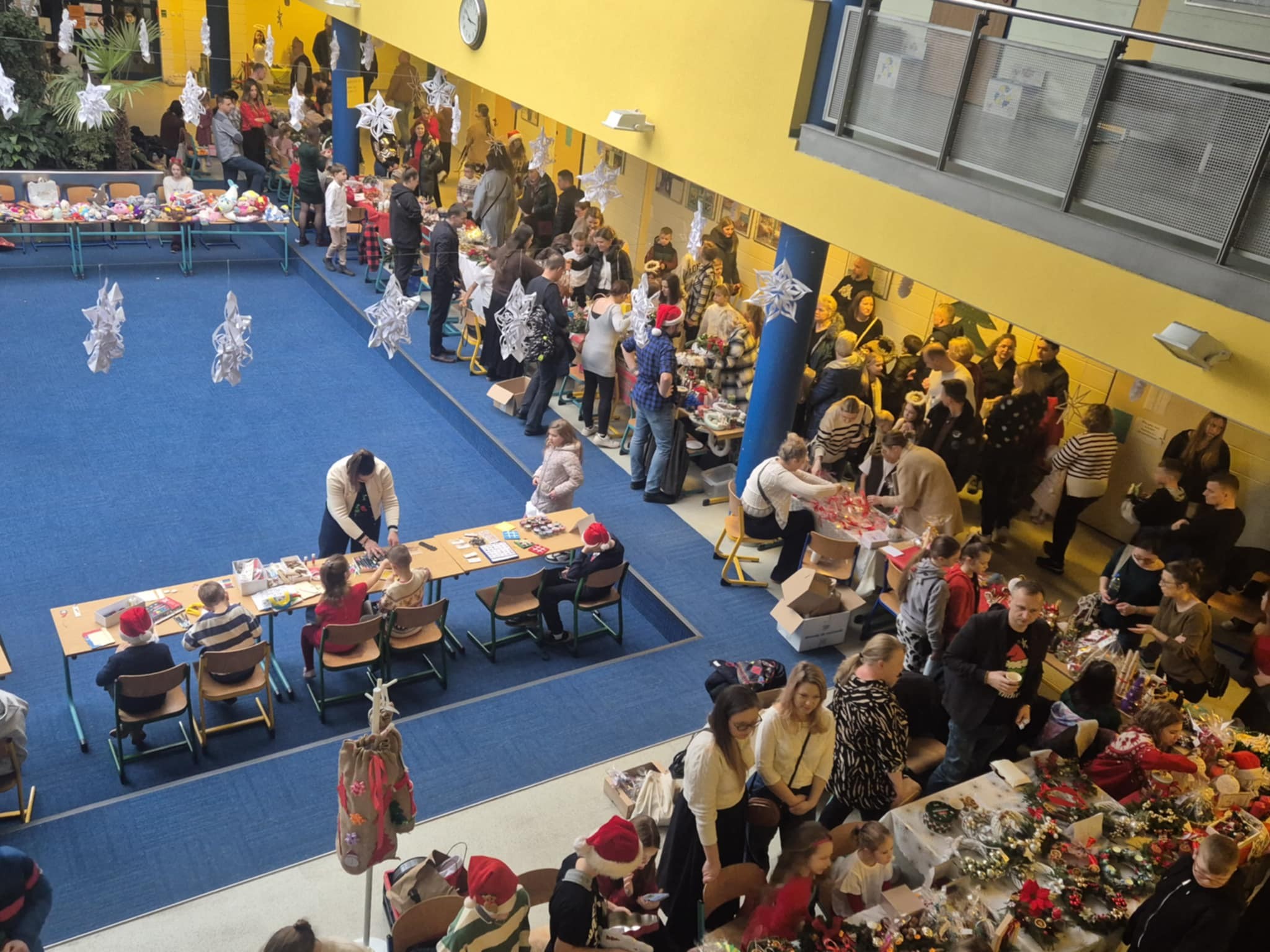 13 grudnia odbył się w naszej szkole świąteczny kiermasz przygotowany przez Radę Rodziców. Nie zabrakło własnoręcznych ozdób przygotowanych przez naszych uczniów i ich rodziców. Stoły uginały się od kolorowych dekoracji, pachnących pierników i świątecznych upominków. Były występy taneczne i wokalne. Każdy z odwiedzających znalazł coś dla siebie. Kiermasz był doskonałą okazją do wspólnej zabawy, rozmów i poczucia prawdziwej świątecznej atmosfery.